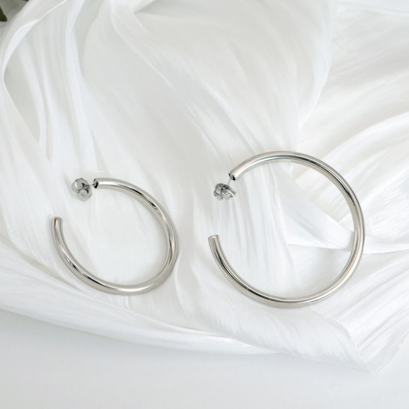 ต่างหูสแตนเลสทรงกลมขนาดใหญ่ ดีไซน์ทันสมัยสำหรับผู้หญิง เหมาะสำหรับถ่ายภาพแนวสตรีทแฟชั่น งานรันเวย์ งานปาร์ตี้ และเป็นของขวัญ