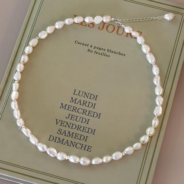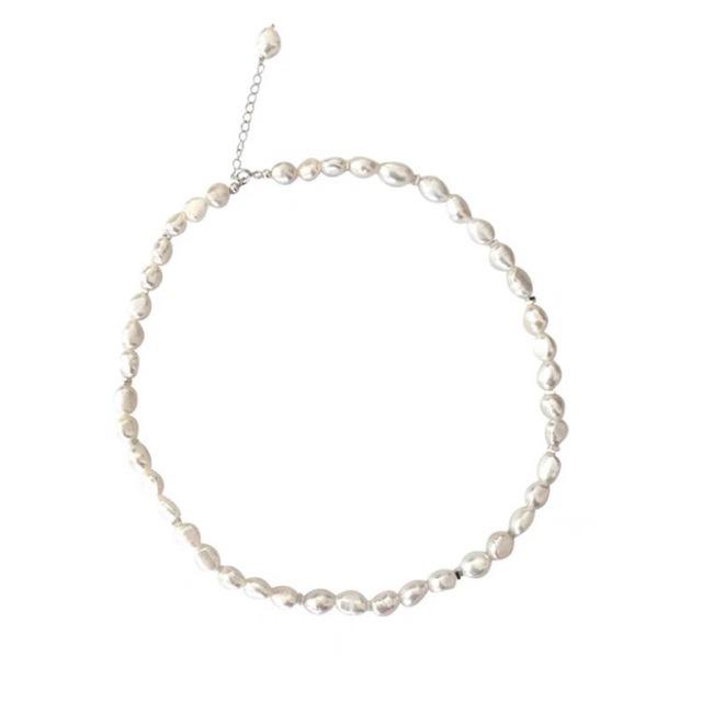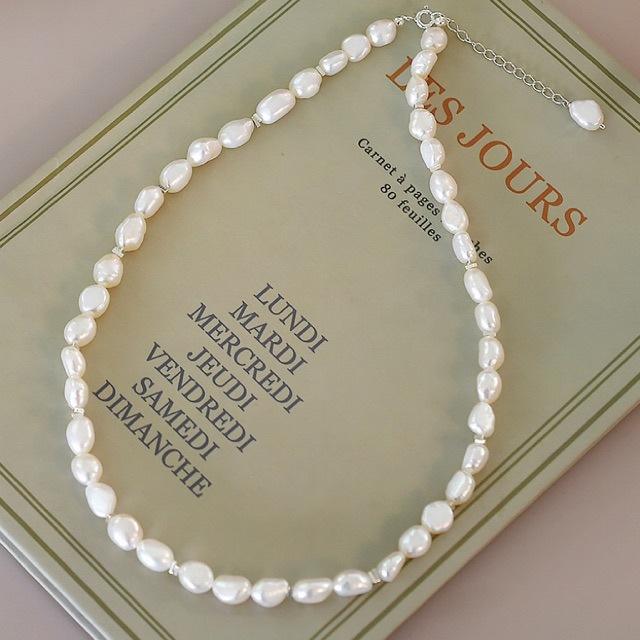 สร้อยคอไข่มุกบาโรกเงินแท้ S925 ดีไซน์ทันสมัย พร้อมโซ่เงินแท้แบบกระดูกไหปลาร้า ทนทานและมีสไตล์ เหมาะสำหรับการสวมใส่แบบเลเยอร์