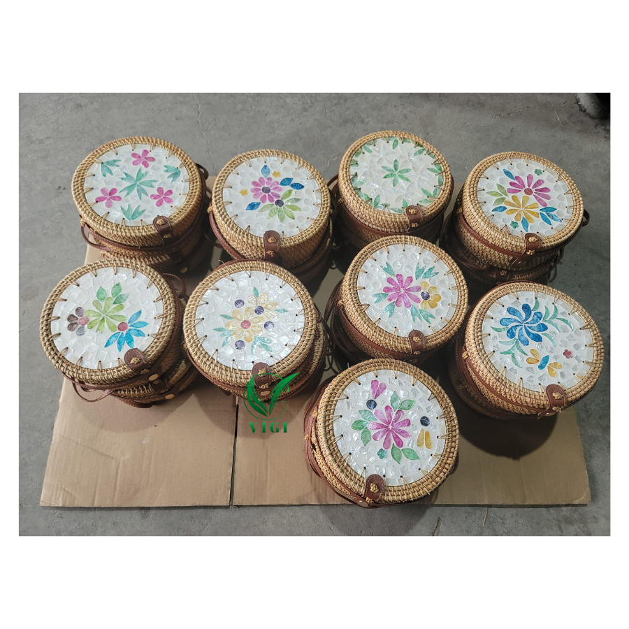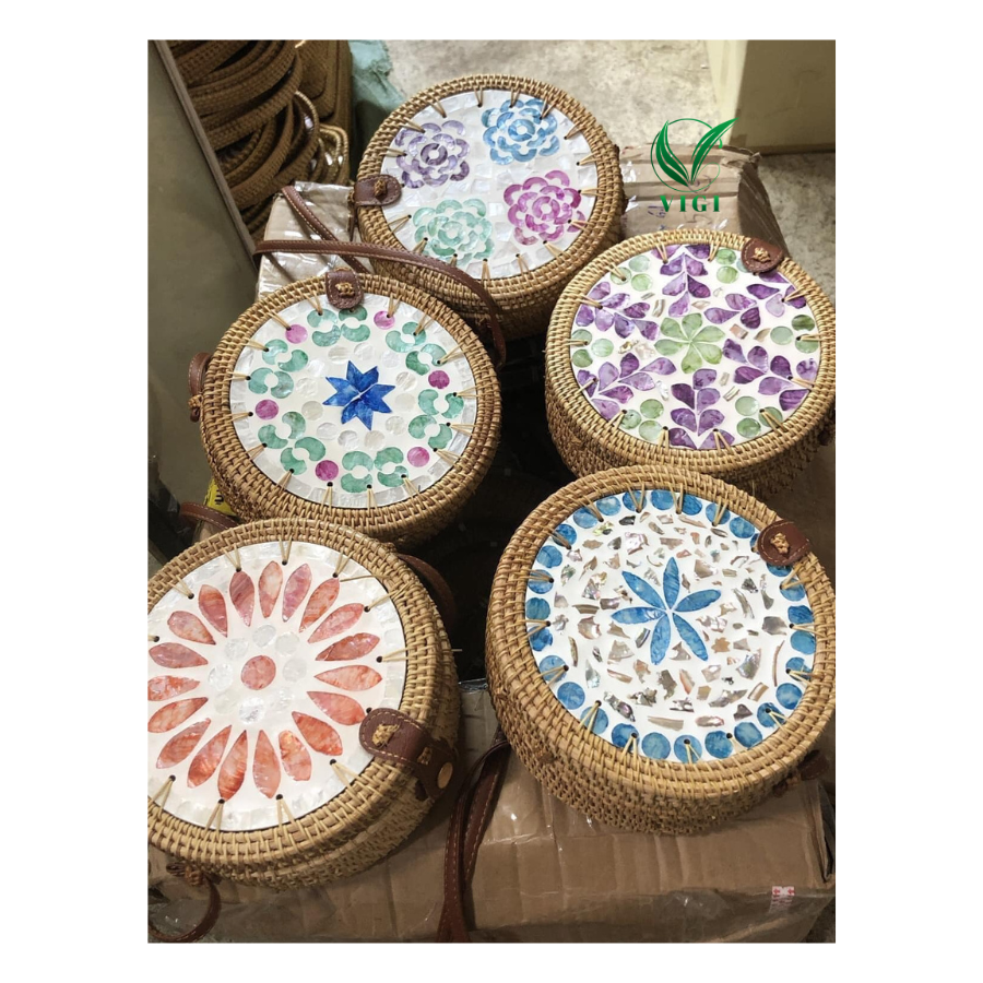 กระเป๋าโท้ทแฟชั่นจากหญ้าทะเลประดับมุกสำหรับช้อปปิ้ง
