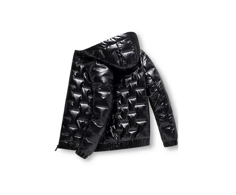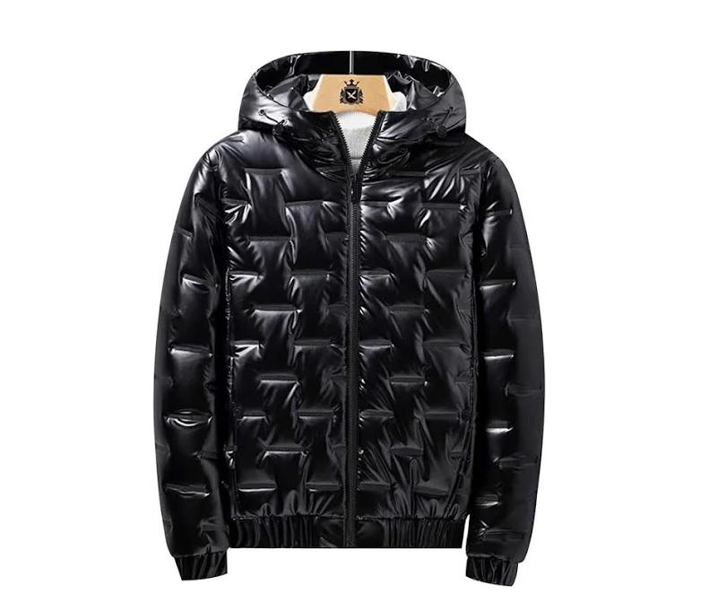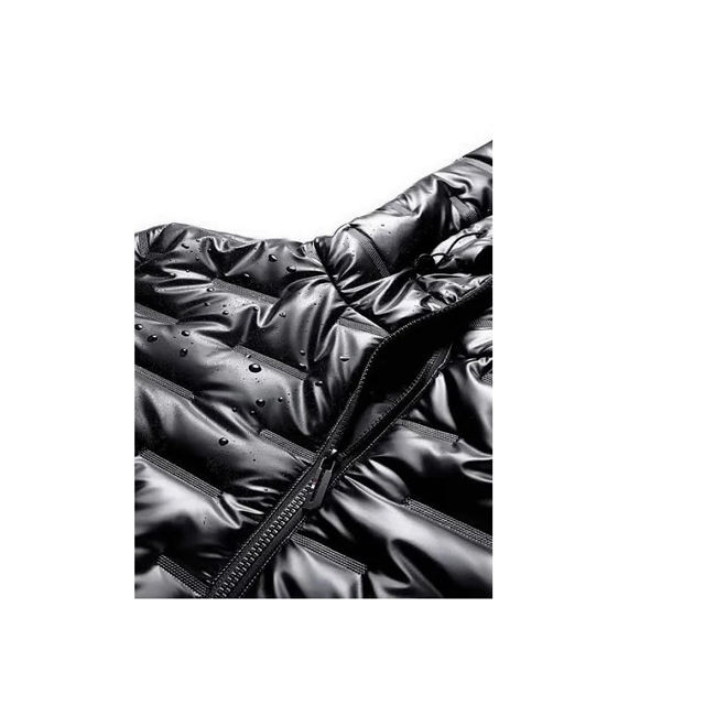 เสื้อแจ็คเก็ตพัฟเฟอร์ดีไซน์สั่งทำสีดำเงาทันสมัยสำหรับผู้ชาย กันลม ระบายอากาศได้ดี ดีไซน์ล่าสุด เสื้อแจ็คเก็ตพัฟเฟอร์ผู้ชาย