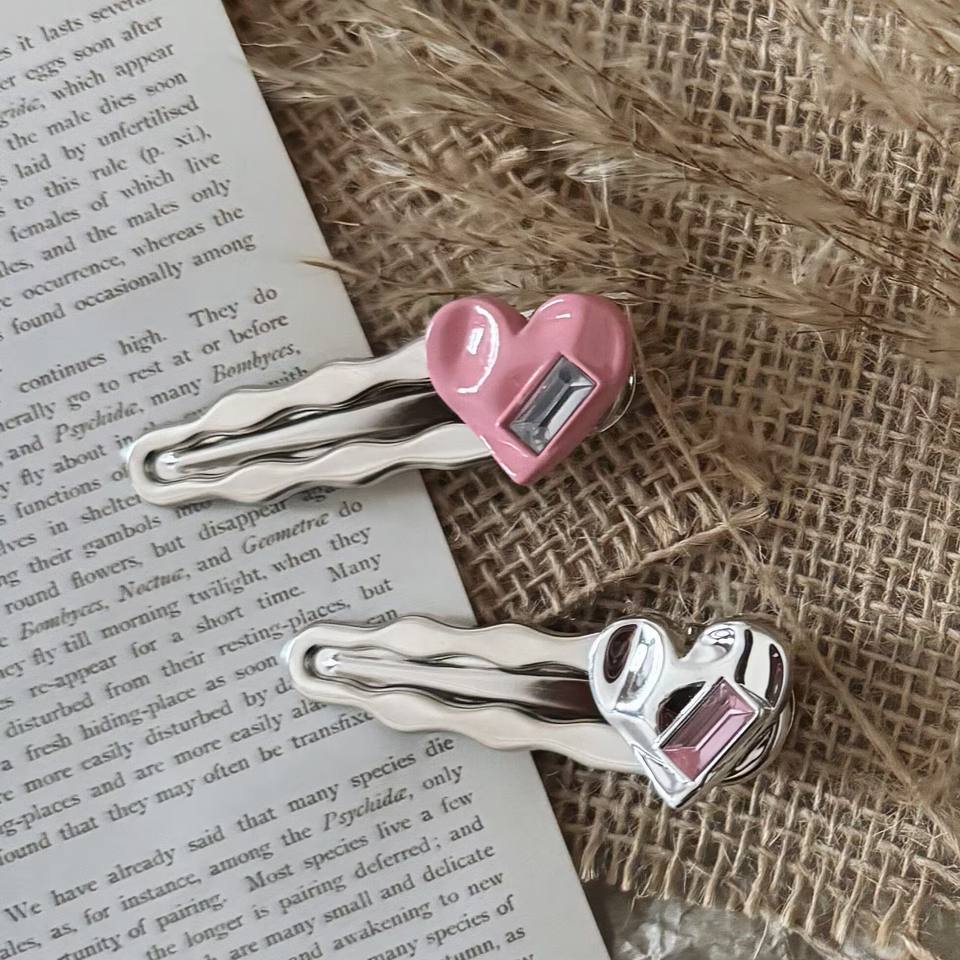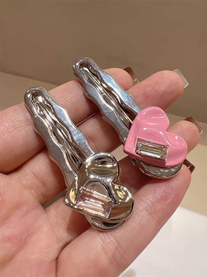 Fashionable Silver Gray Alloy Hair Clips for Women Heart-Shaped Duckbill Edge Bangs Clips Non-Slip Hair Accessories
