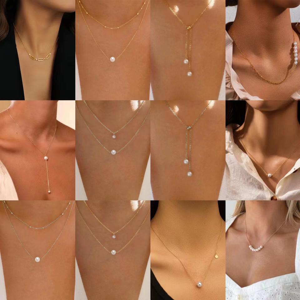 สร้อยคอไข่มุกน้ำจืดแท้ Wenchi ดีไซน์เรียบหรู ทันสมัย ชุบทองแท้ รูปทรงตัว Y คลาสสิก สำหรับผู้หญิง จากประเทศจีน