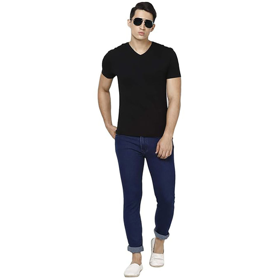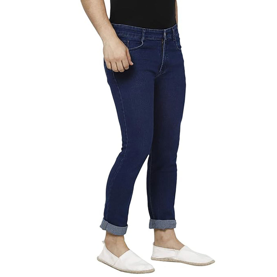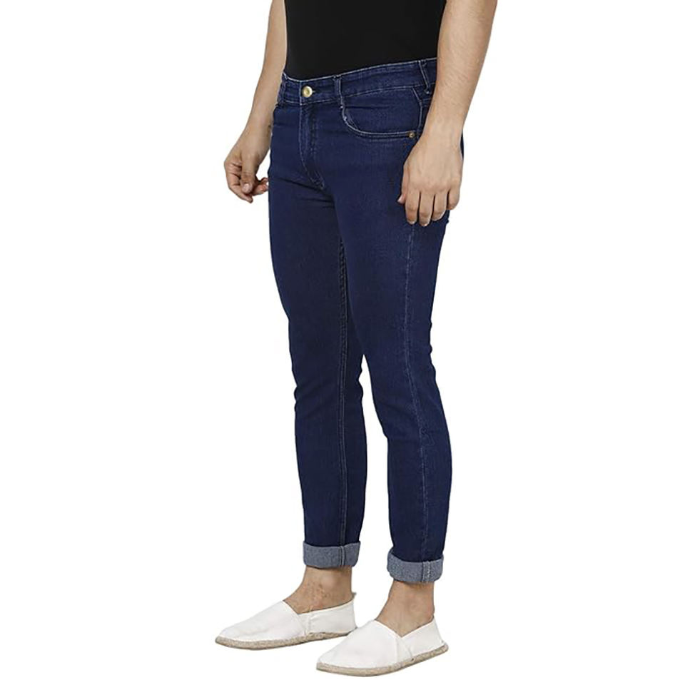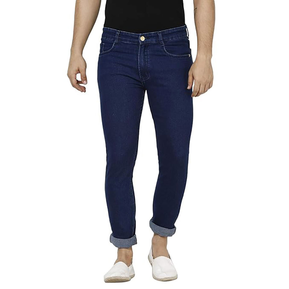 กางเกงยีนส์แฟชั่นเข้ารูปสีน้ำเงินเข้มของผู้ชายกางเกงยีนส์ผ้าฝ้ายใส่สบายกางเกงยีนส์ลำลองทรงสกินนี่แบบใหม่เสื้อผ้าเดนิมสำหรับผู้ชายขายส่ง