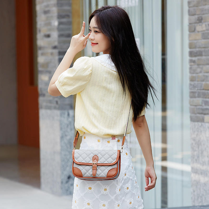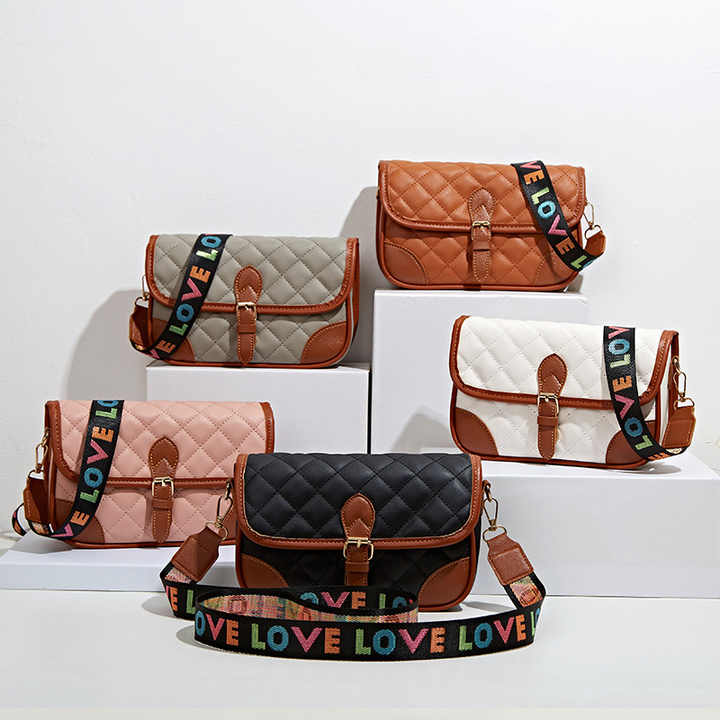 กระเป๋าสะพายข้างทรงสี่เหลี่ยมเล็กทันสมัย ปักลายเพชร สายสะพายไหล่เดี่ยว ซิปปิดแบบมีตัวอักษรสีสันสดใส