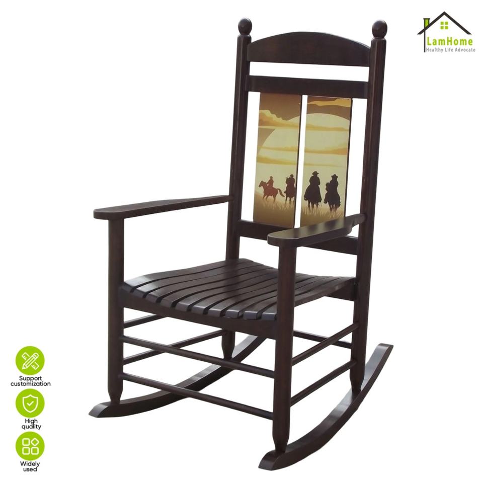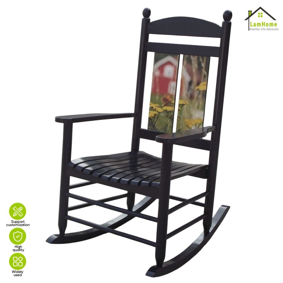 เก้าอี้โยกไม้เนื้อแข็งพิมพ์ลายดิจิทัลทันสมัย สำหรับผู้สูงอายุ พักผ่อนในบ้าน ห้องนั่งเล่น ระเบียง ตกแต่งบ้าน