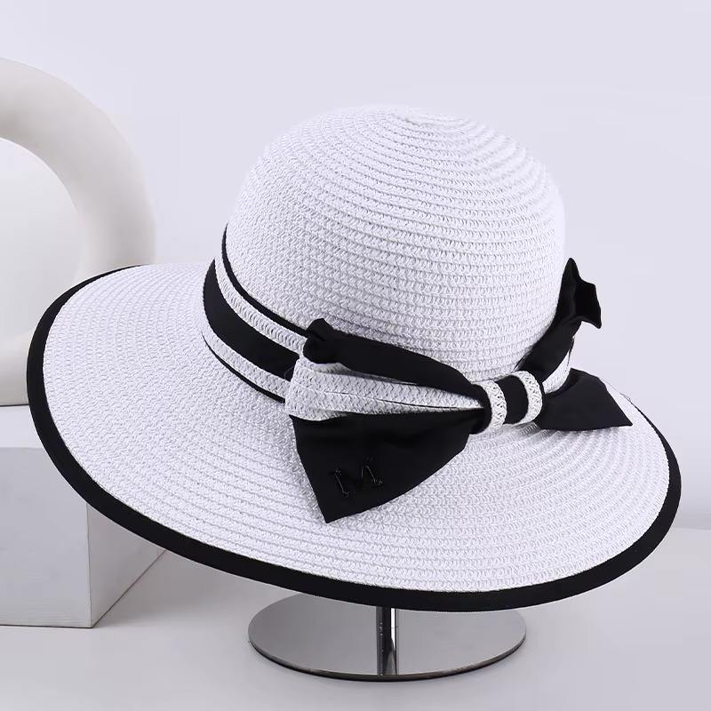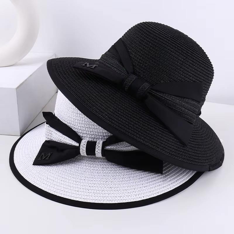 หมวกกันแดดไนลอนแฟชั่นฤดูใบไม้ผลิและฤดูร้อนพร้อมโบว์ตกแต่งระบายอากาศได้สะดวกสบายสำหรับวันหยุดพักผ่อนชายหาดกลางแจ้ง