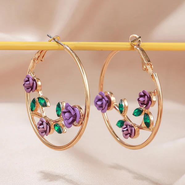 ต่างหูห่วงดอกเดซี่คริสตัลชุบทอง18K ทำจากสเตนเลสสตีลต่างหูห้อยแบบหวาน