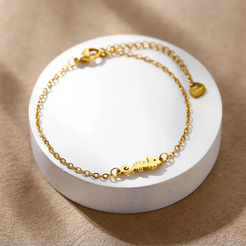 สร้อยข้อมือสแตนเลสสตีลทรงเรขาคณิตทันสมัย ชุบทอง 18K ดีไซน์แบบโซ่เงางาม สไตล์มหาสมุทร เหมาะสำหรับผู้หญิง ใส่ไปเที่ยวพักผ่อน