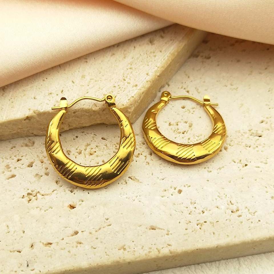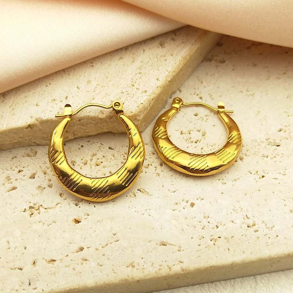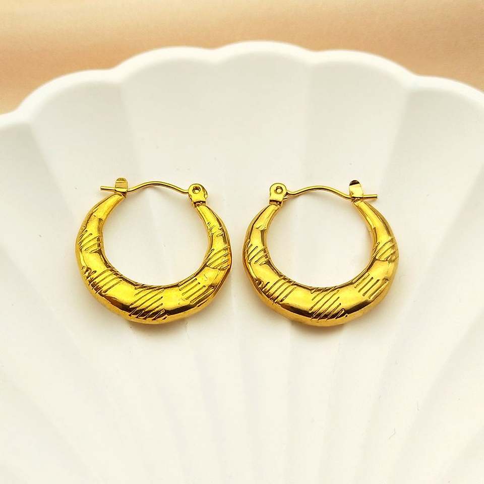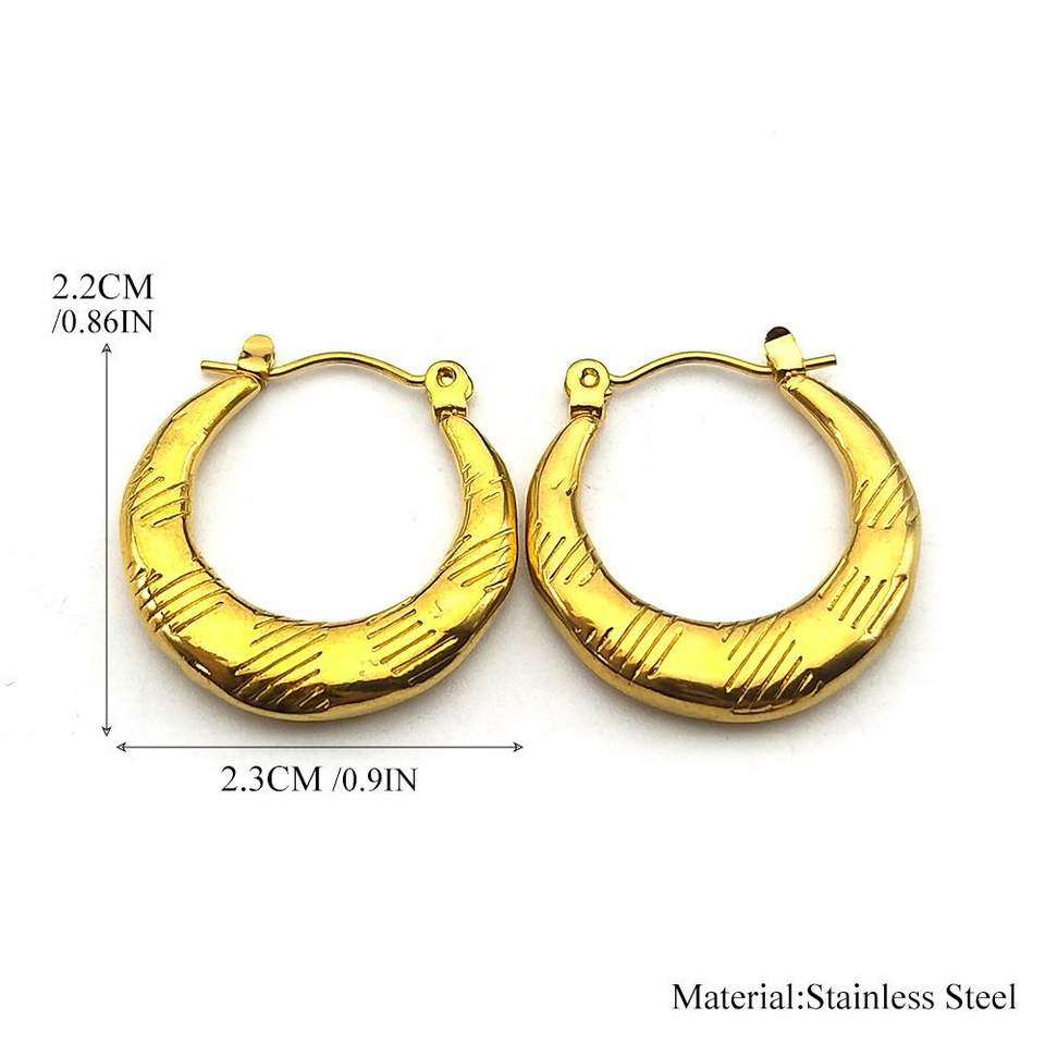 Fashionable Stainless Steel Jewelry Earrings for Women, Non Allergic and Non Fading Geometric Relief Texture C-shaped Style