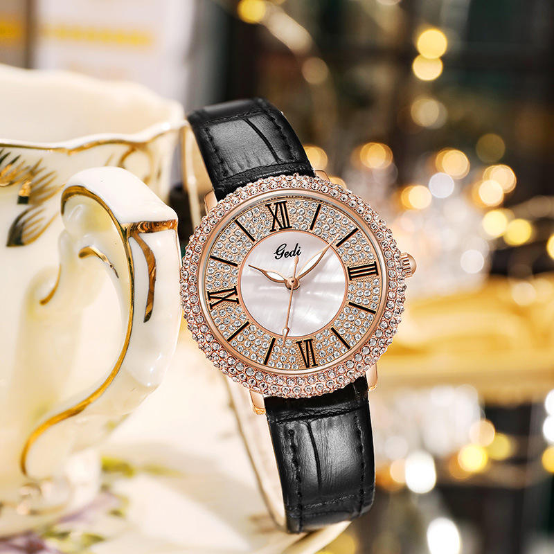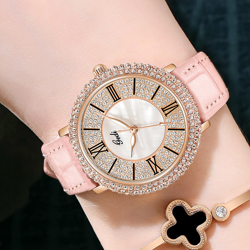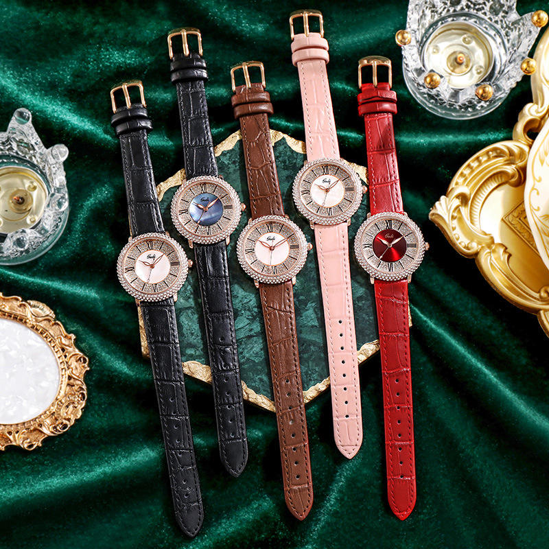 นาฬิกาแฟชั่นลายท้องฟ้าดาวสำหรับผู้หญิงกันน้ำพร้อมสายหนังแท้และหน้าปัดมุกสำหรับวันหยุดข้อเสนอพิเศษ