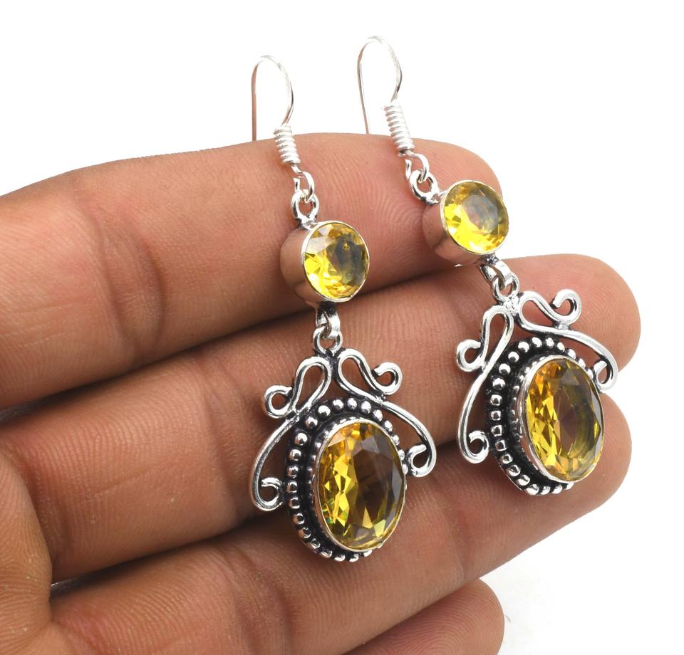 ต่างหูห้อยเงินสเตอร์ลิงทันสมัยรูปหยดน้ำอัญมณีซิทรีนตะขอเกี่ยวหลายสีต่างหูแบบห้อย