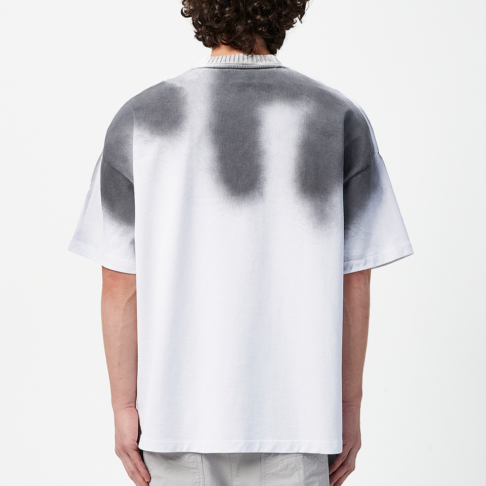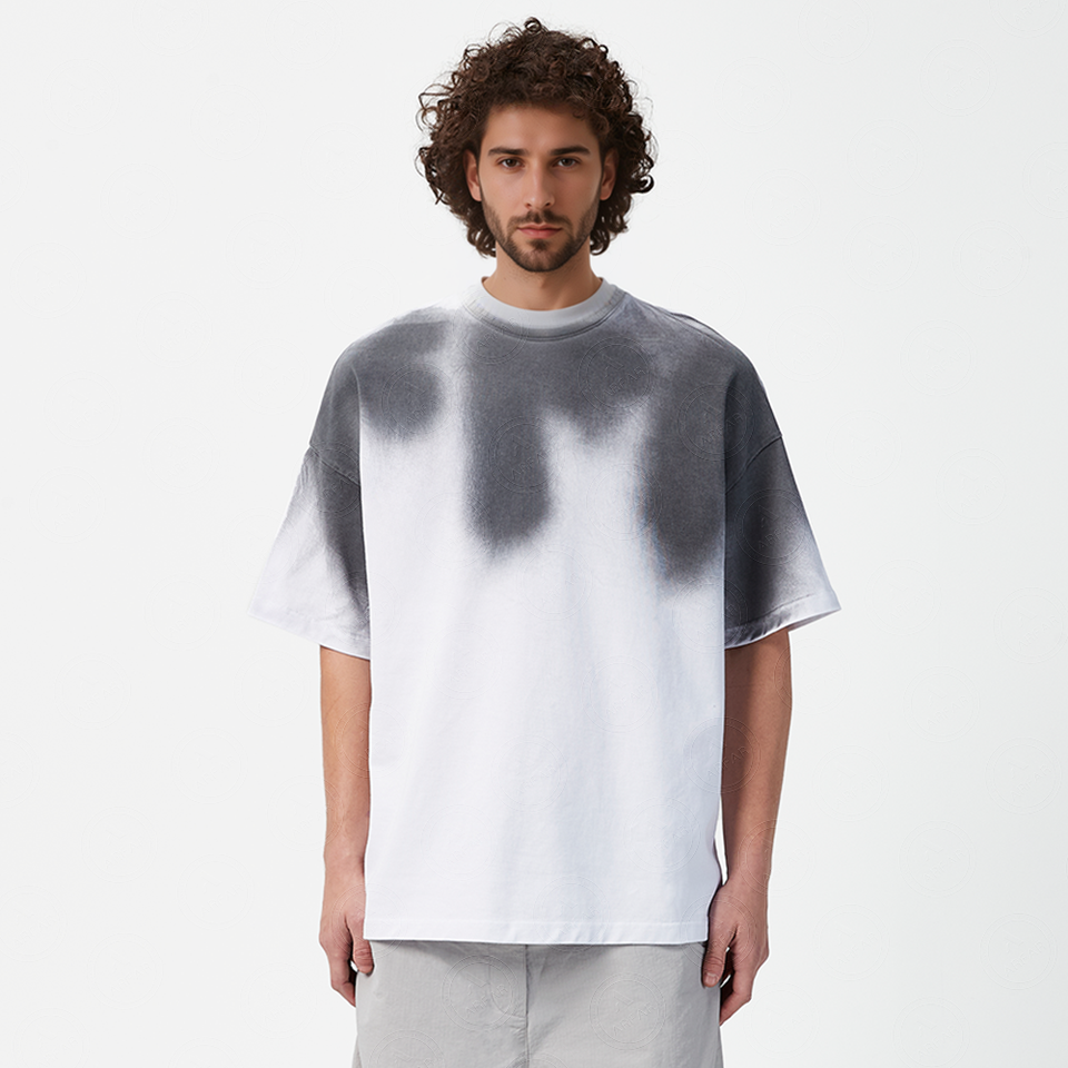 เสื้อยืดโอเวอร์ไซส์ทรงบ็อกซี่สำหรับผู้ชาย สไตล์แฟชั่นสตรีท ผ้าฝ้ายพรีเมียมวินเทจสีเทาและสีขาว ล้างสีแล้ว พิมพ์โลโก้ตามสั่ง