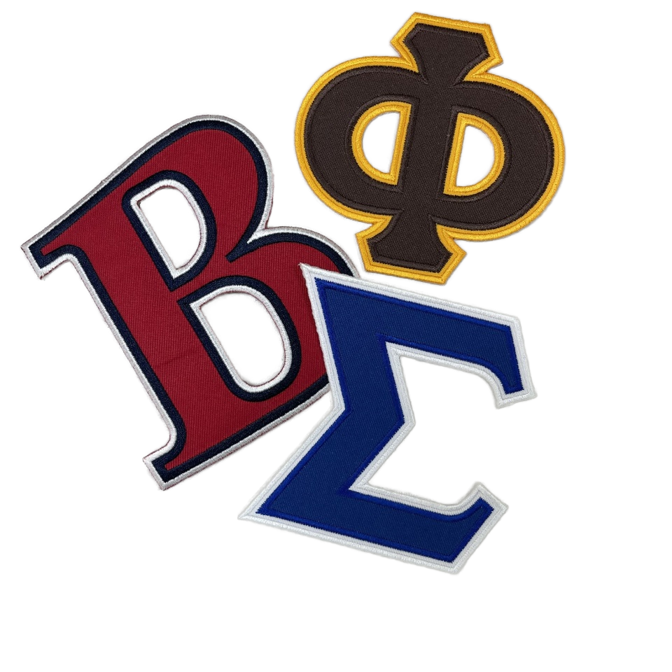 แพทช์ปักตัวอักษรกรีกสำหรับสมาคมนักเรียนหญิงและนักเรียนชาย ผลิตในไต้หวัน เหมาะสำหรับติดหมวก ของขวัญ และเสื้อผ้า - ดีไซน์ทันสมัยและมีสไตล์