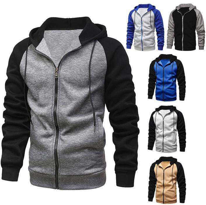 เสื้อฮู้ดสไตล์แฟชั่นสำหรับผู้ชายทรงสลิมฟิตทนทานเสื้อมีฮู้ดแบบบล็อกสี