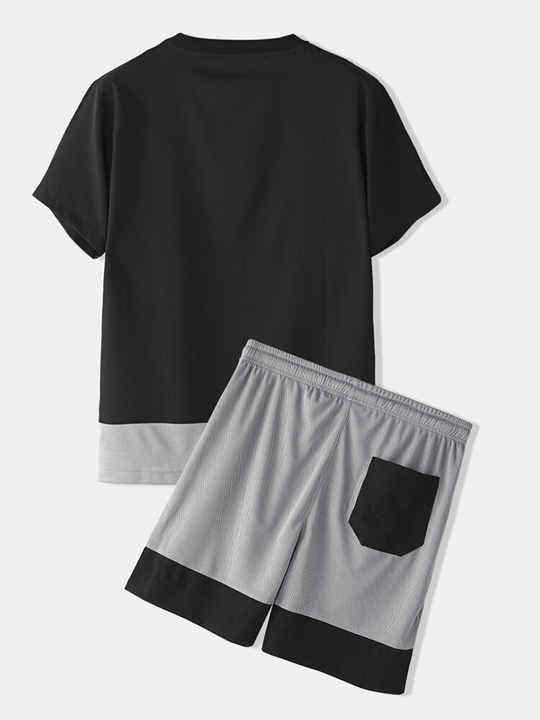 ชุดเสื้อผ้าผู้ชายแฟชั่นฤดูร้อน ระบายอากาศได้ดี เหมาะสำหรับวิ่งและใส่ลำลอง ชุดออกกำลังกายสองชิ้น เสื้อแขนสั้นและกางเกงขายส่ง