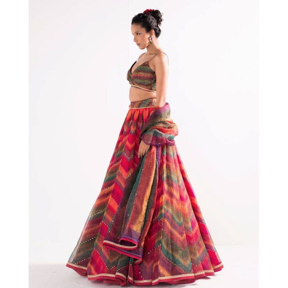 Lehenga choli ผ้าใยไหมพิมพ์ลายดิจิทัลพร้อมชุดอินเดียแบบดั้งเดิม dupatta Maroon ที่ทันสมัย