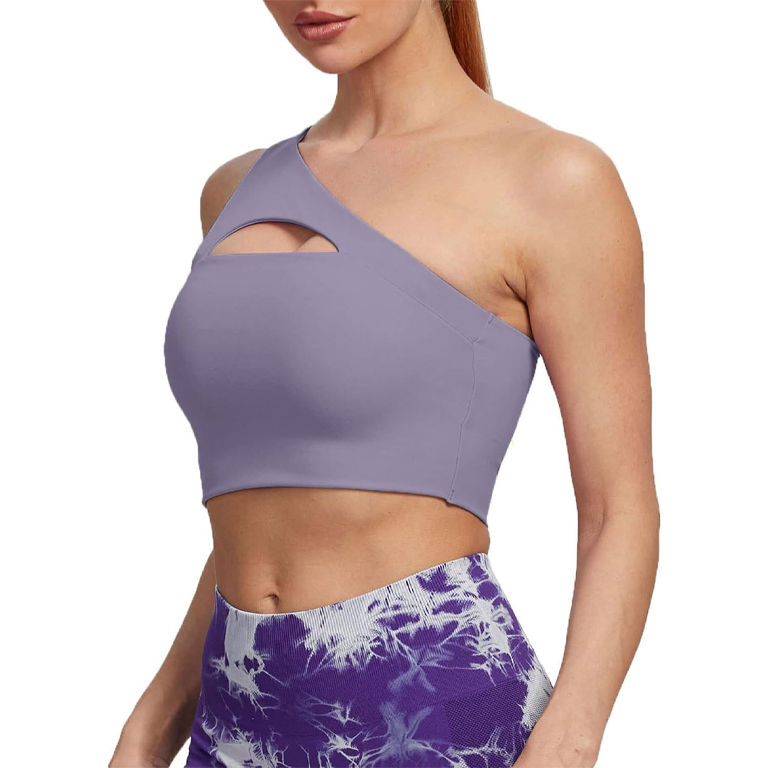 สปอร์ตบราไหล่เดียวสำหรับผู้หญิงสปอร์ตบราออกกำลังกายเล่นฟิตเนส