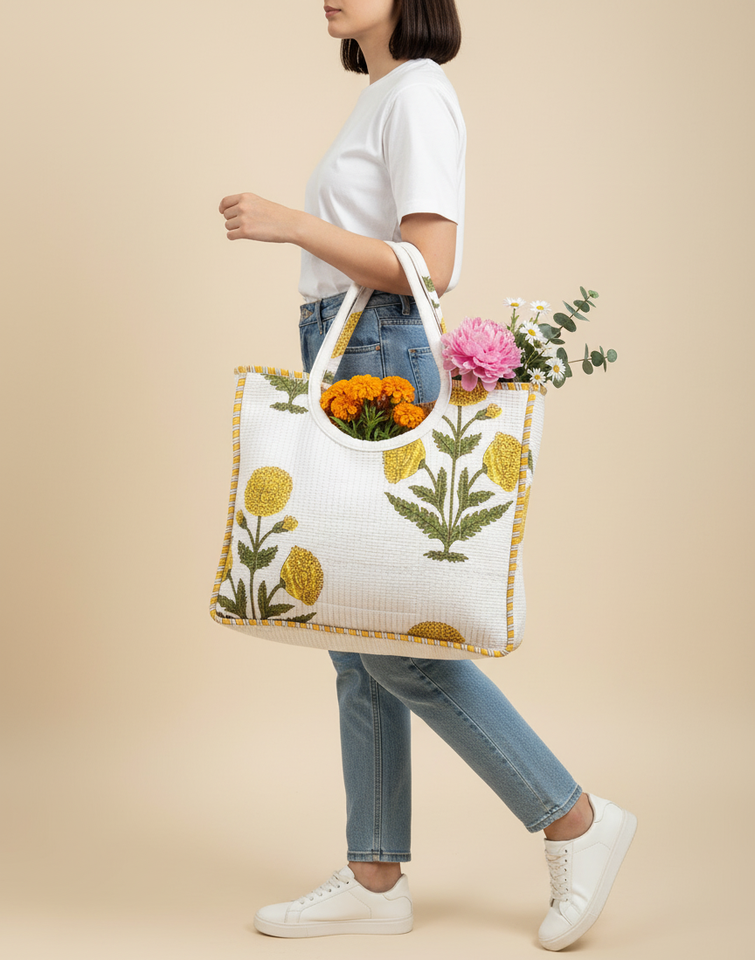 กระเป๋าโท้ทผ้าคอตตอนสำหรับผู้หญิงประเพณีทันสมัยกระเป๋าสะพายไหล่สไตล์อินเดียทำด้วยมือของผู้หญิงเป็นมิตรกับสิ่งแวดล้อม