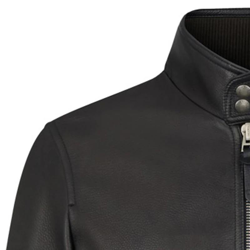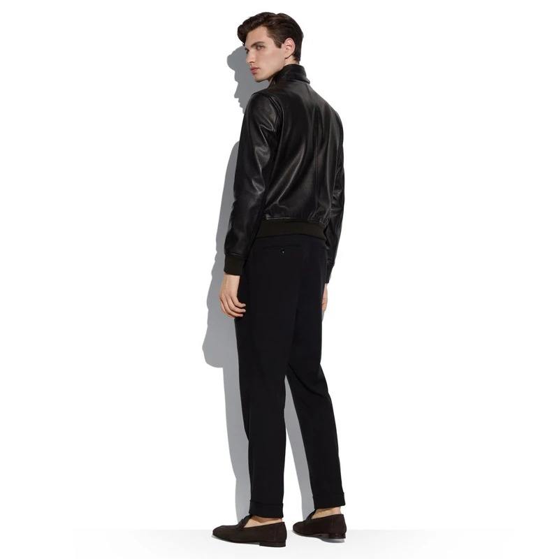 แจ็กเก็ตผู้ชายผ้าใบหนังแท้คอพับแฟชั่น2024ฤดูใบไม้ร่วง/ฤดูหนาวกำหนดขนาดได้เองเสื้อคลุมกันน้ำสีดำ