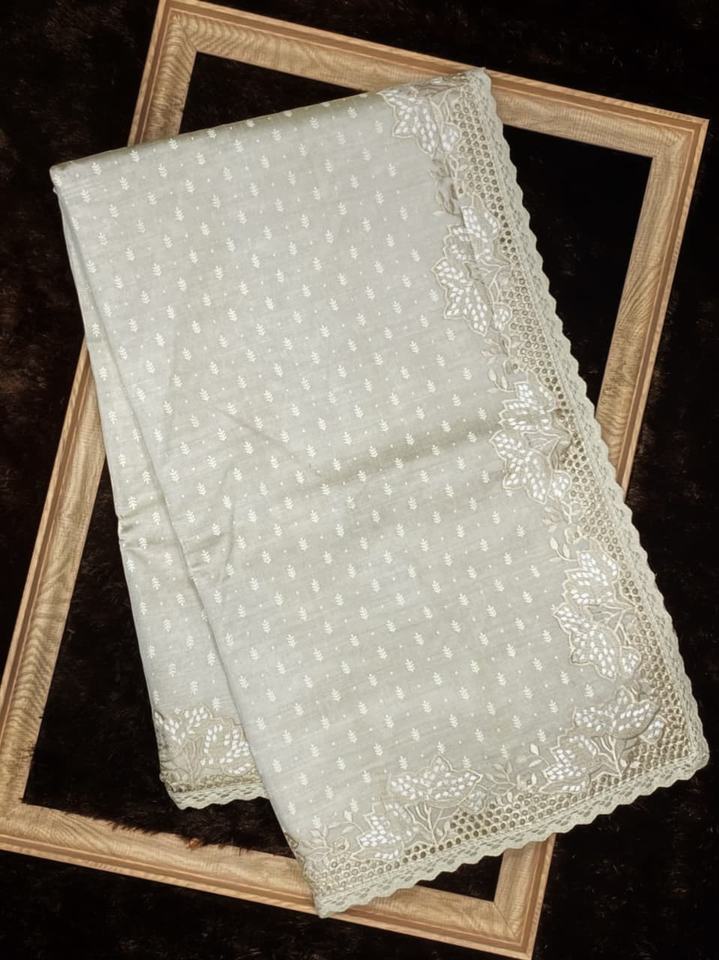 ผ้าคอตตอนทัสเซอร์แฟชั่นพร้อมสารีปักด้าย