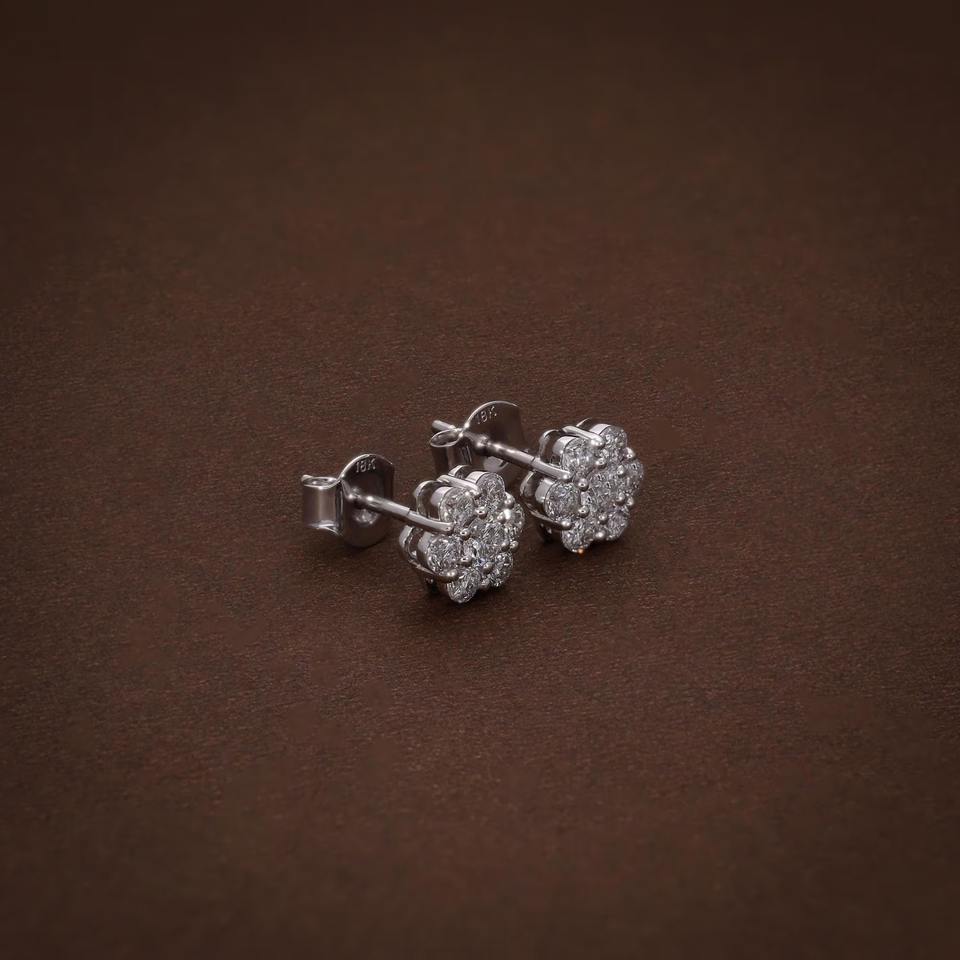 ต่างหูเพชร VVS D คุณภาพสูง ผลิตในห้องปฏิบัติการ ดีไซน์ทันสมัย พร้อมต่างหูแบบคลัสเตอร์ทองคำขาว 14k สำหรับผู้หญิง ไอเดียของขวัญ ราคาประหยัด