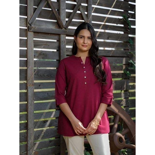 เสื้อเคอตต้อนแฟชั่นสตรีแบบลำลองสีไวน์สไตล์พื้นเมืองฤดูร้อน