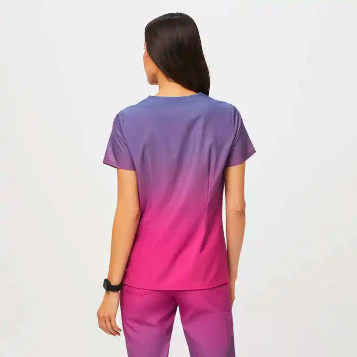 ชุดสครับทางการแพทย์ผ้าทอพิมพ์ลายชุดเครื่องแบบพยาบาลงานตามสั่งของผู้หญิงทันสมัย