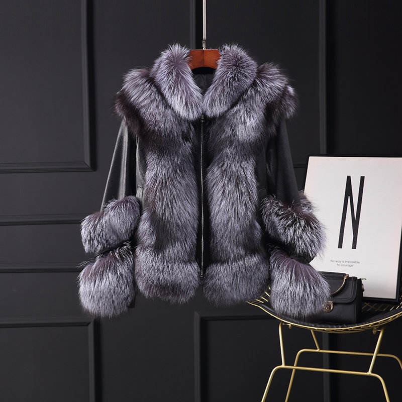 เสื้อแจ็คเก็ตขนสุนัขจิ้งจอกสำหรับผู้หญิงทันสมัย พร้อมหนังแกะแท้