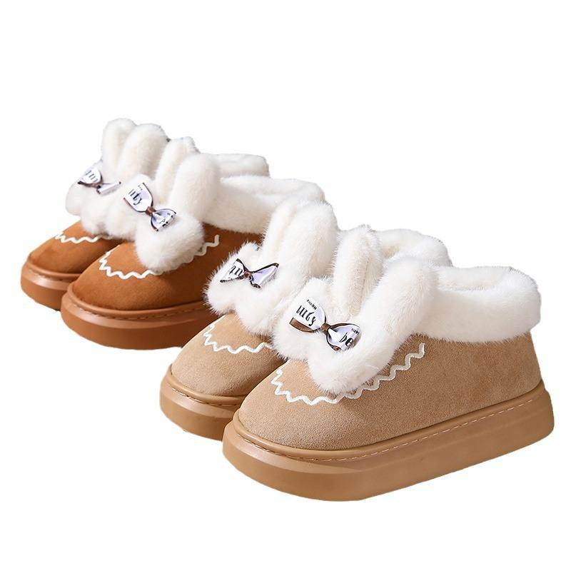รองเท้าแตะผู้หญิงแฟชั่น พื้นหนา EVA บุขนสำหรับฤดูหนาว น้ำหนักเบา นุ่มสบาย ตกแต่งโบว์ ผ้ากำมะหยี่ หนัง ให้ความอบอุ่น