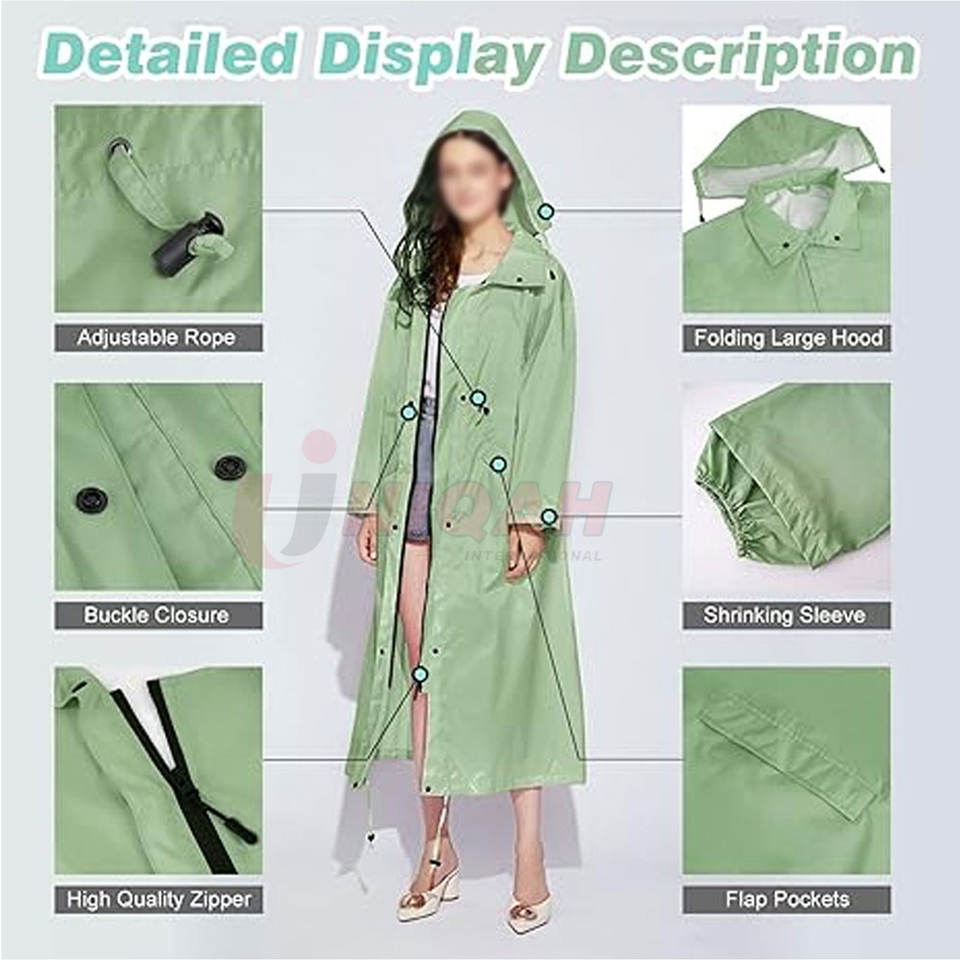 Fashionable Women's Windproof Hooded Rain Jacket Green Long, Waterproof, and Packable Outdoor Raincoat With Adjustable Waist