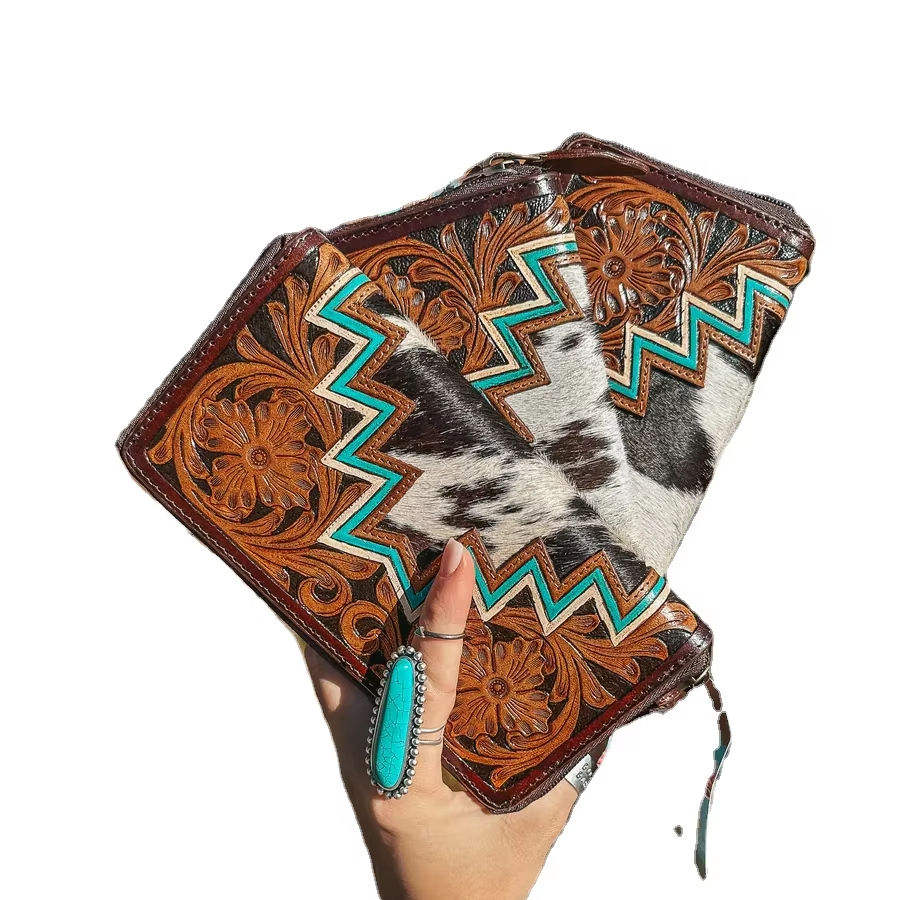 ชุดกระเป๋าสตางค์หนังแท้สำหรับผู้หญิง ดีไซน์ทันสมัย แบบพับสามตอน พร้อมซิปปิด ป้องกัน RFID สไตล์วินเทจ ซับในไนลอน
