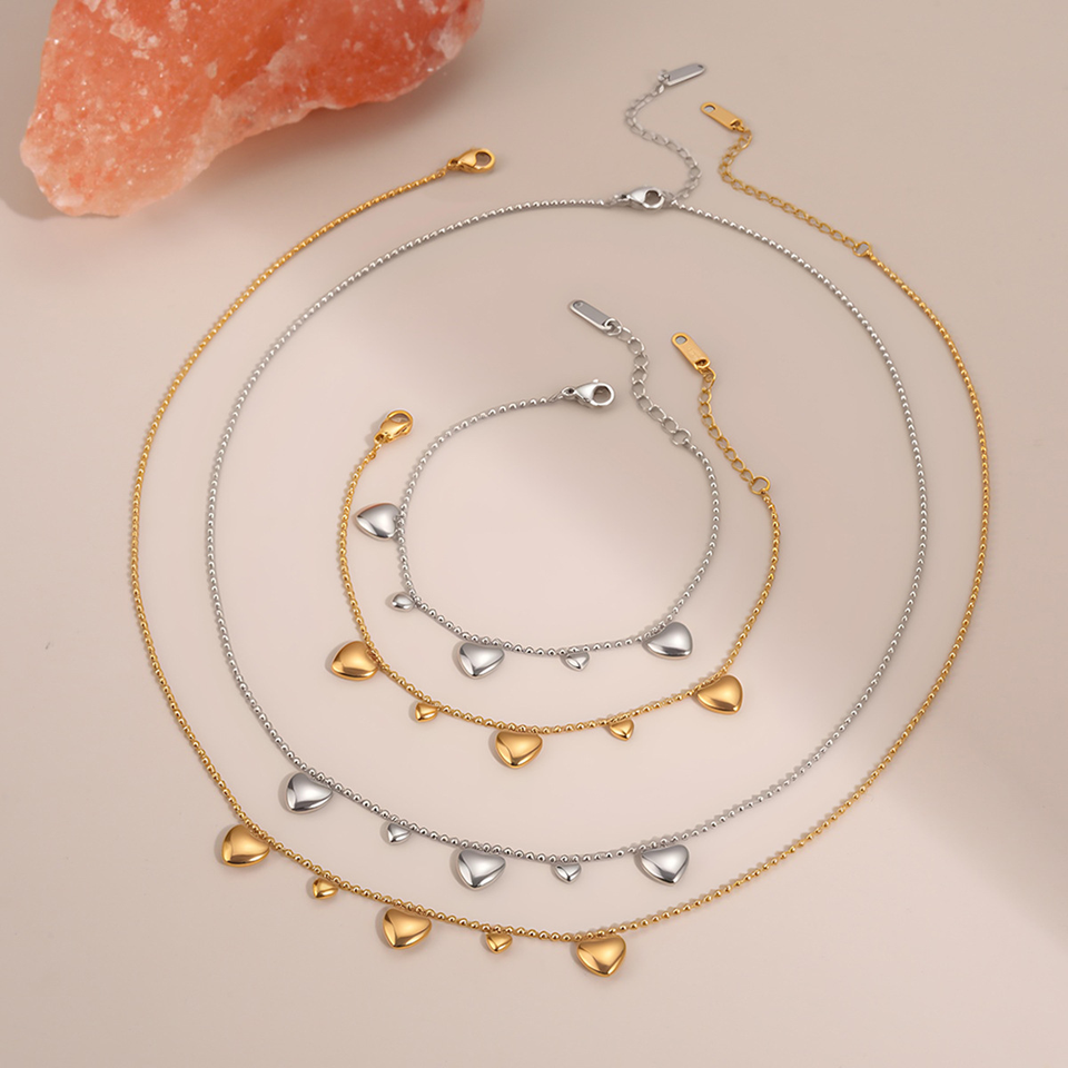 สร้อยคอและกำไลรูปหัวใจชุบสแตนเลส ทันสมัยและใช้งานได้หลากหลาย - ไม่ซีดจาง หรูหราและสง่างาม