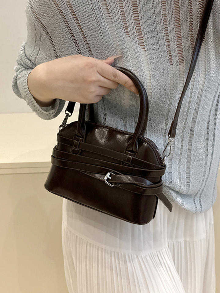 กระเป๋าสะพายข้างทรงสี่เหลี่ยมเล็ก ดีไซน์พับได้ หนัง PU คุณภาพสูง ซิปประดับมุก แฟชั่นวินเทจ สำหรับทุกเพศ