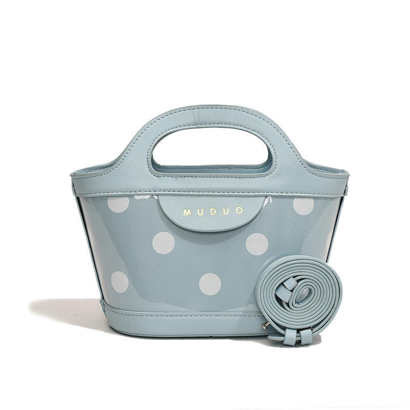 กระเป๋าผู้หญิงใช้ได้สองแบบมีสไตล์สีชมพูอ่อนมีลายจุดและดีไซน์วัสดุมันวาว