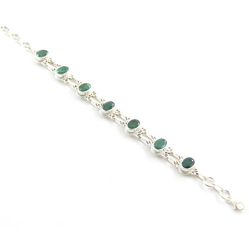 กำไลข้อมือเงินแท้ 925 ประดับด้วยพลอยสีเขียวมรกตควอตซ์ งานแฮนด์เมดจากจาปุร ผู้ส่งออกเครื่องประดับพลอยเงินทำมือ