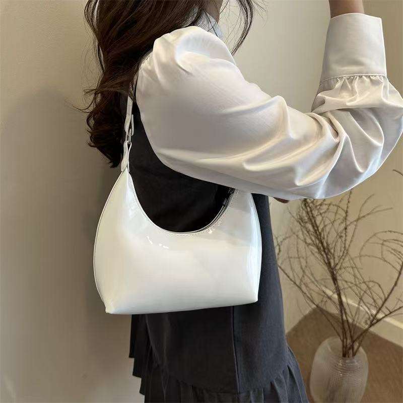 กระเป๋าทรงพระจันทร์ครึ่งดวงที่มีเส้นเรียบง่ายโดดเด่นด้วยภาพเงาที่ทันสมัย