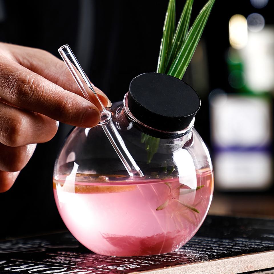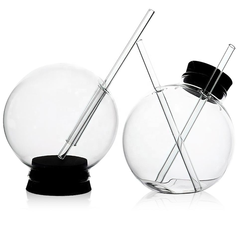 แก้วมาร์ตินี่ทรงกลมแบบมีหลอดดูด ขนาด 450 มล. อเนกประสงค์ สำหรับบาร์ แก้วค็อกเทลทรงกลม