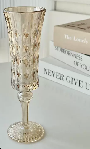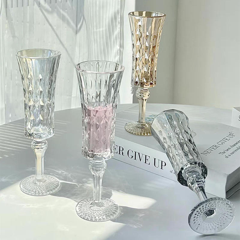 แก้วแชมเปญทรงเพชร แก้วน้ำผลไม้ แก้วไวน์ลายเสาโรมันโบราณ