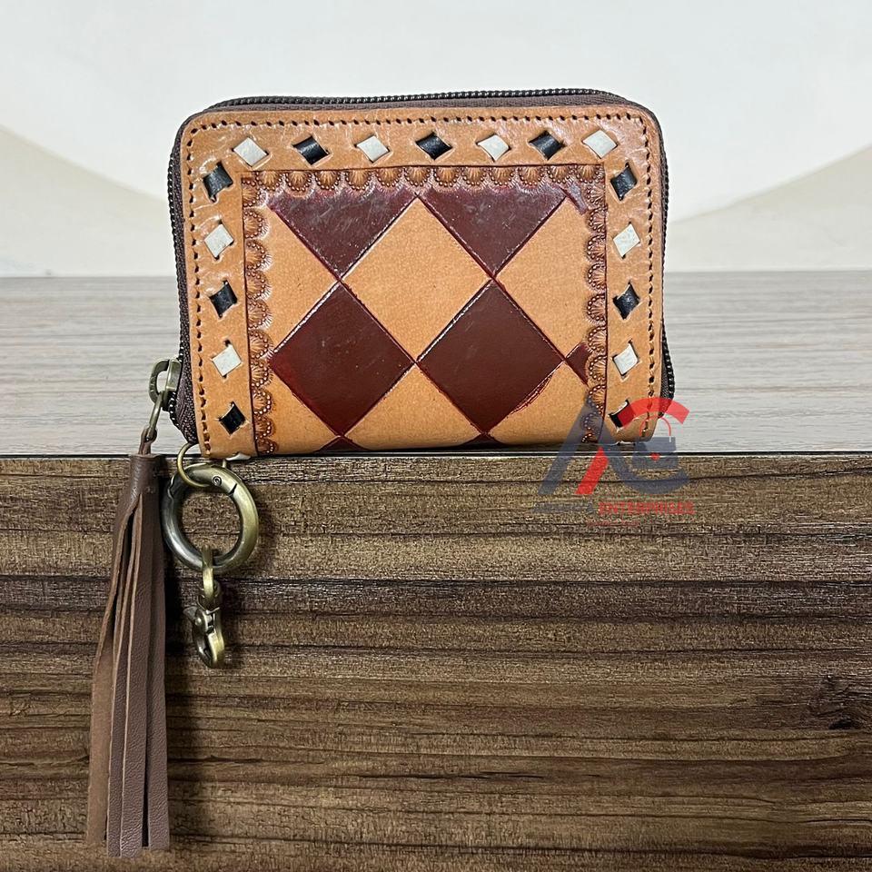 Product name:Hand Tooled Checkered Pattern Mini Coin Purse & Card Holder