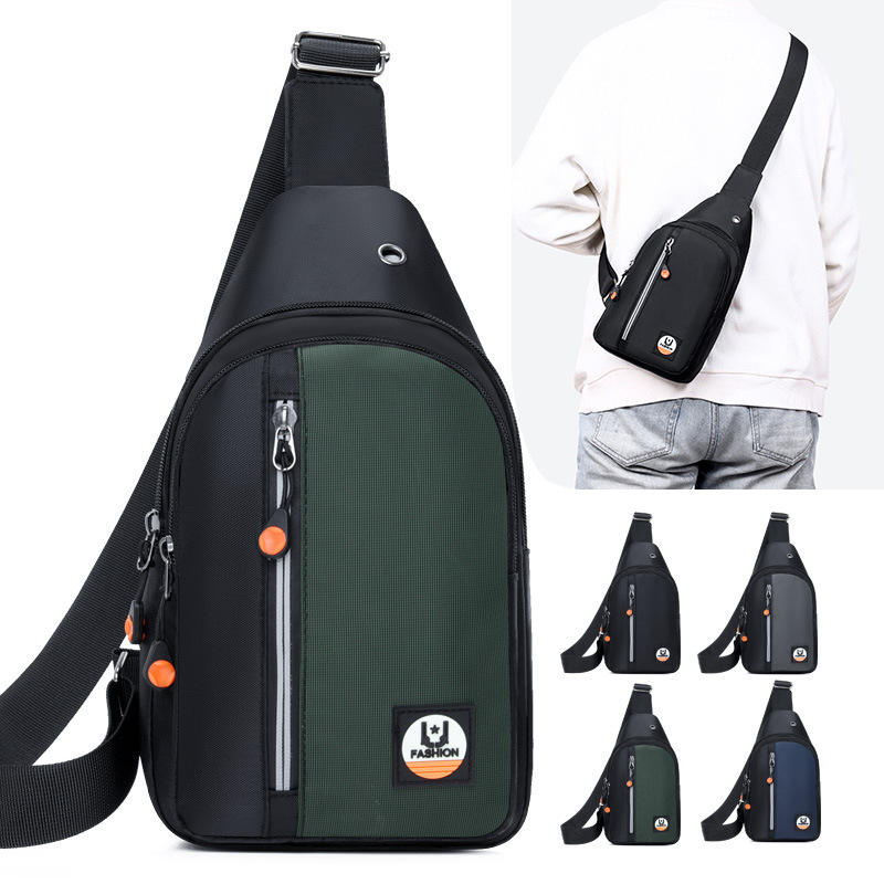 กระเป๋าคาดหน้าอกผู้ชายแฟชั่น ผ้าอ๊อกซ์ฟอร์ด สีดำ เรียบง่าย สไตล์ลำลอง สำหรับกิจกรรมกลางแจ้ง ใส่โทรศัพท์ได้ รุ่นสปริง 2025