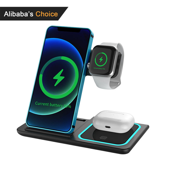 แท่นชาร์จไร้สายที่สามารถพับได้แบบ3-in-1แท่นชาร์จไร้สายแบบแม่เหล็กร้อน15W สำหรับ Samsung