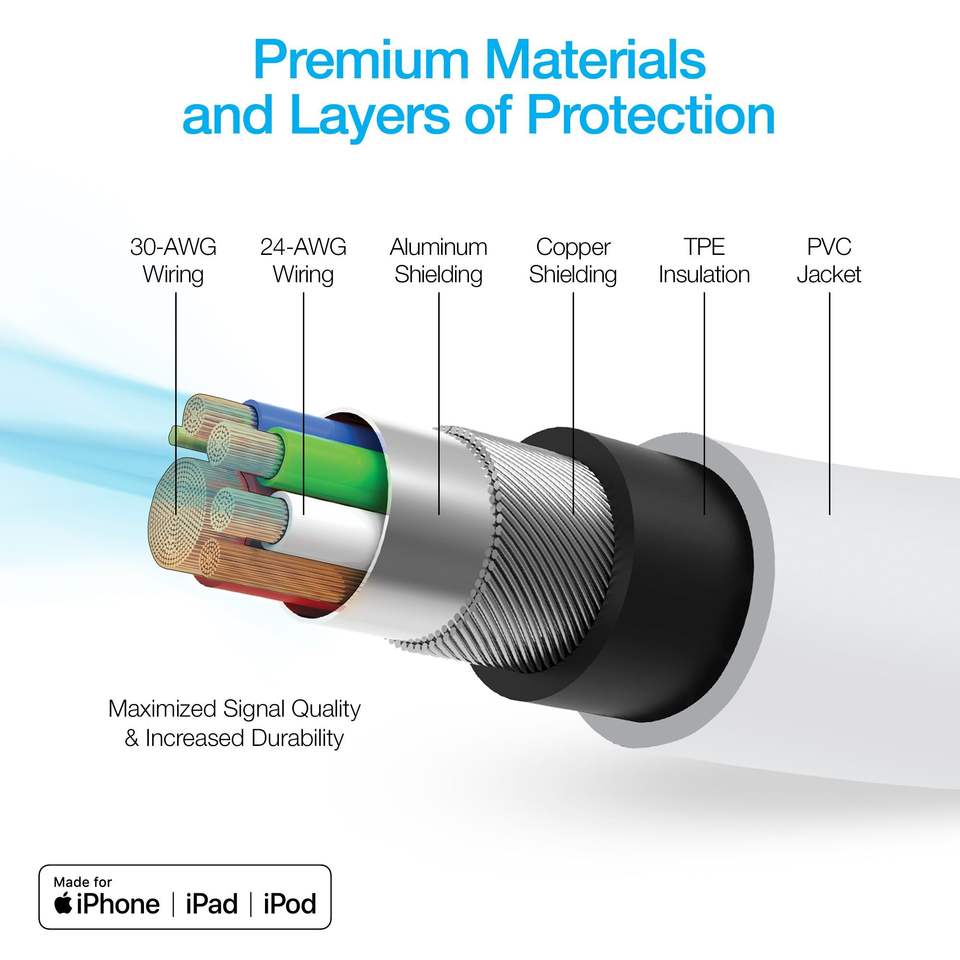 สายชาร์จเร็ว 12 ฟุต USB-C เป็น MFi Lightning สายเคเบิลและสายไฟคุณภาพพรีเมียม