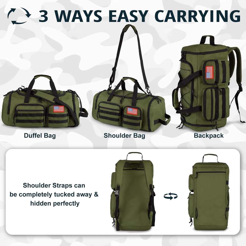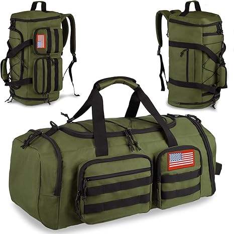 กระเป๋าทรงดัฟเฟิลมีสีเขียวแบบกองทัพอุปกรณ์จัดระเบียบสำหรับการเดินทางกลางแจ้งที่ทันสมัยสำหรับใช้ในชั่วข้ามคืน