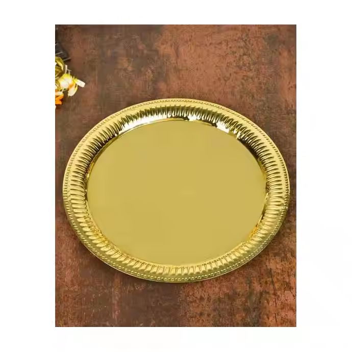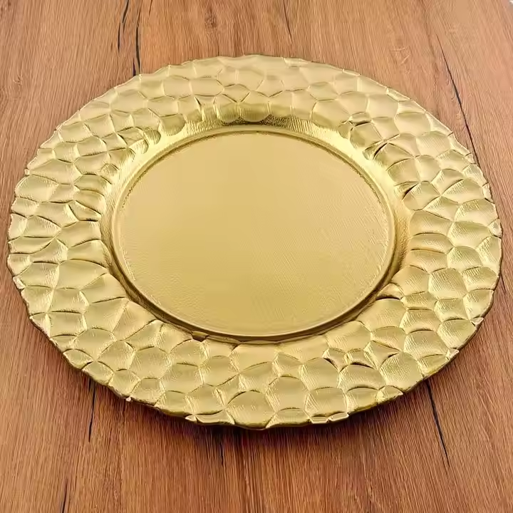 จานรองอาหารพลาสติกสีทอง ดีไซน์หรูหราทันสมัย ผลิตภัณฑ์ขายดี จัดส่งรวดเร็ว เป็นมิตรต่อสิ่งแวดล้อม