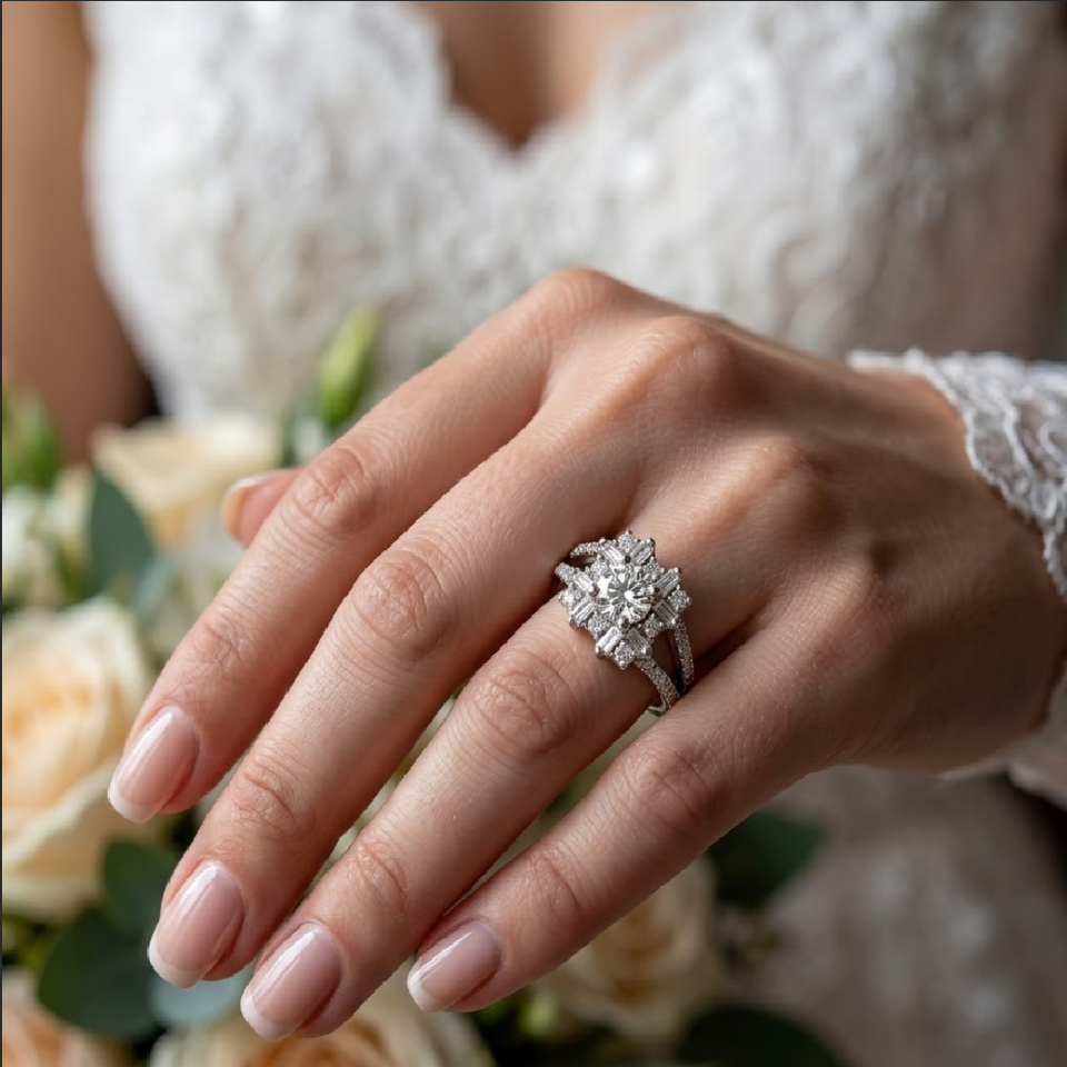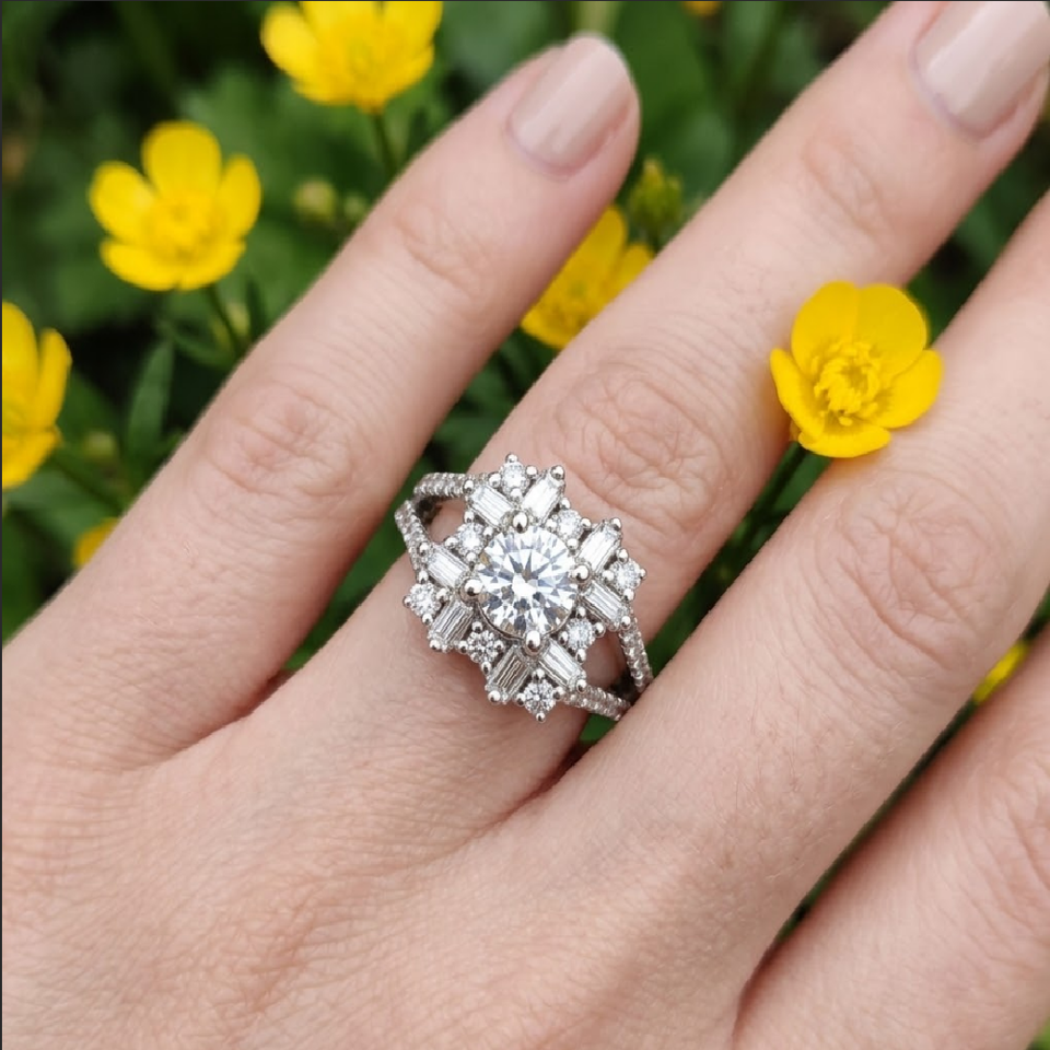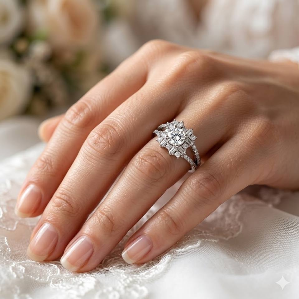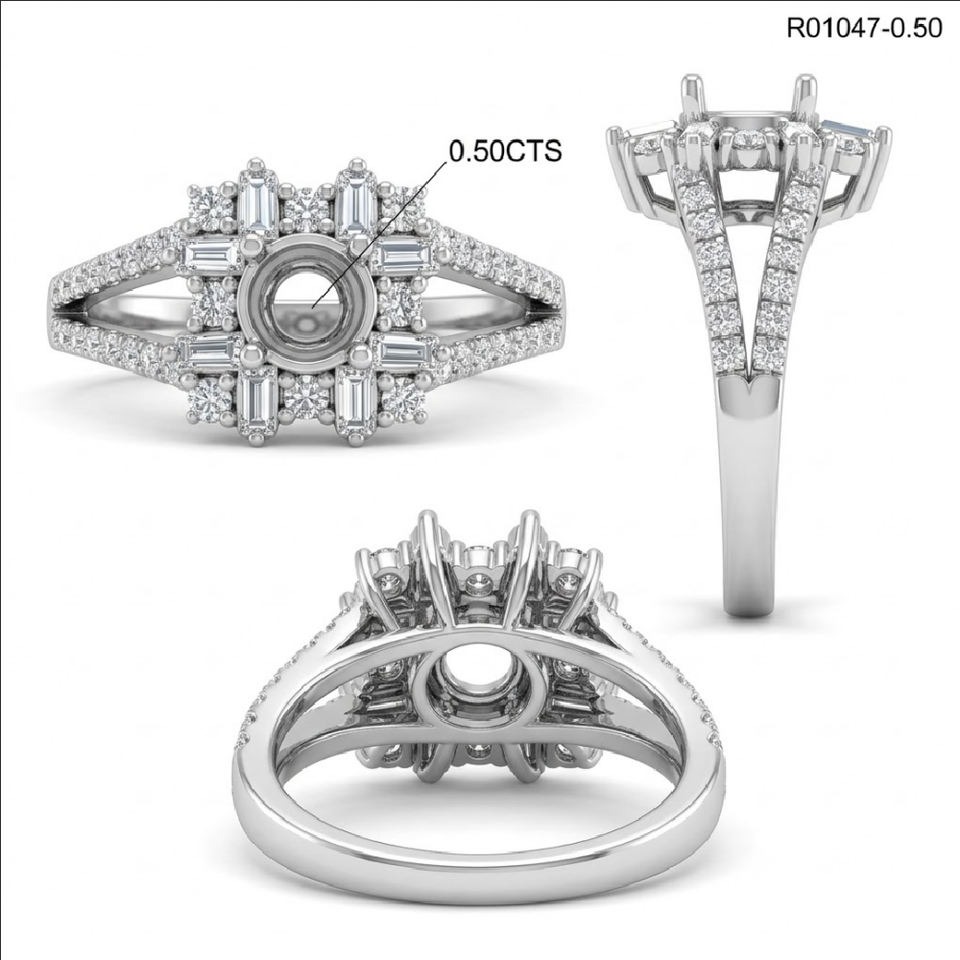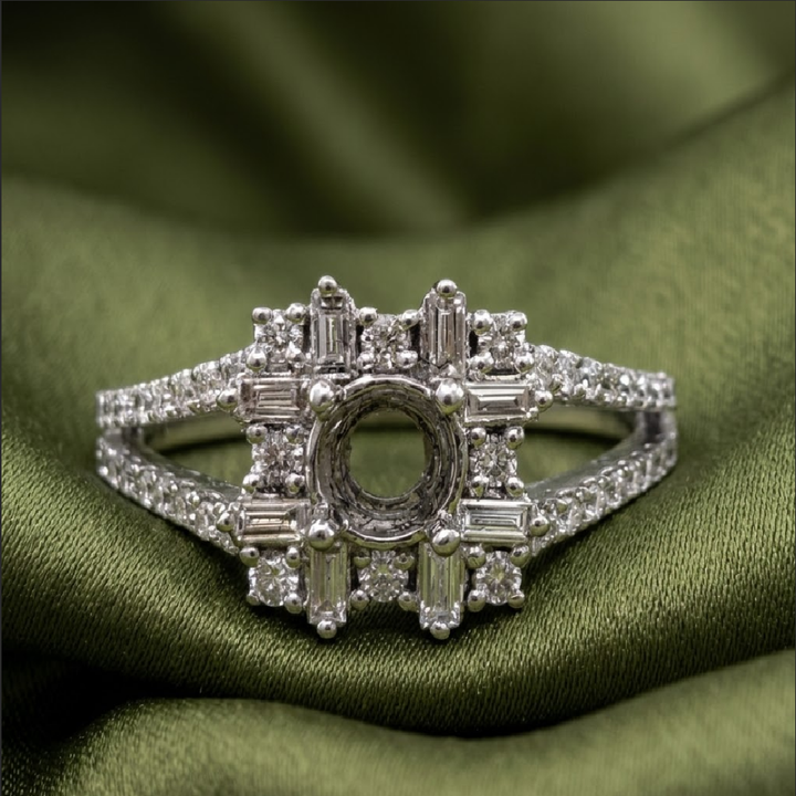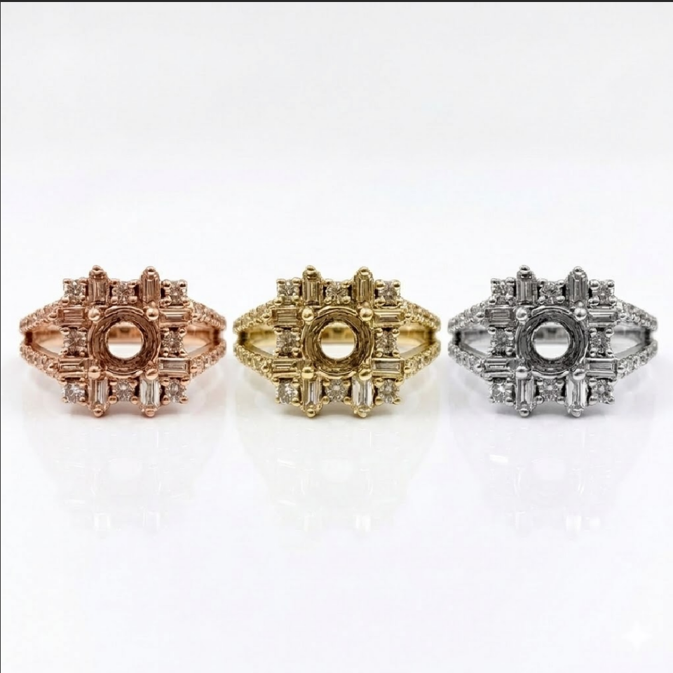 แหวนหมั้นแบบกึ่งภูเขาสำหรับผู้หญิงแหวนเพชรแท้สีทองขาว18K สีทองแท้