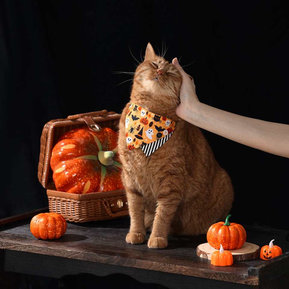 ผ้าพันคอสุนัขดีไซน์สไตล์วันฮาโลวีนผ้าพันคอสามเหลี่ยมแมว