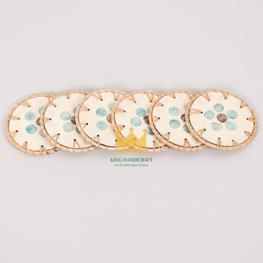 ชุดถาดรองแก้วเคลือบด้วยหวายทำมือลายดอกไม้สำหรับโรงแรมและร้านอาหาร