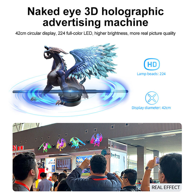 โปรเจคเตอร์โฮโลแกรม 3 มิติ แบบพัดลม 2 ใบพัด ขนาด 42 ซม. เทคโนโลยีสูง มองเห็นภาพสามมิติโดยไม่ต้องใช้แว่นตา จัดส่งรวดเร็ว จอแสดงผล LED 224 ดวง สำหรับโฆษณา