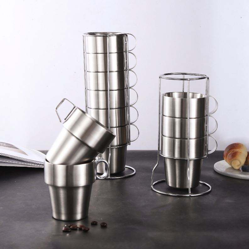 แก้วกาแฟสแตนเลสแบบใช้ซ้ำได้ พร้อมจานรอง ชุดน้ำชาแบบเอธิโอเปีย โอโรโม บรรจุในกล่องของขวัญรักษ์โลก เหมาะสำหรับร้านกาแฟ จัดส่งรวดเร็ว