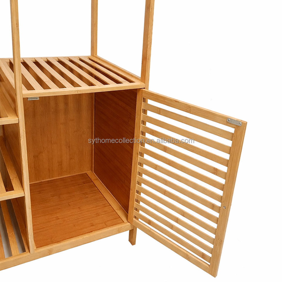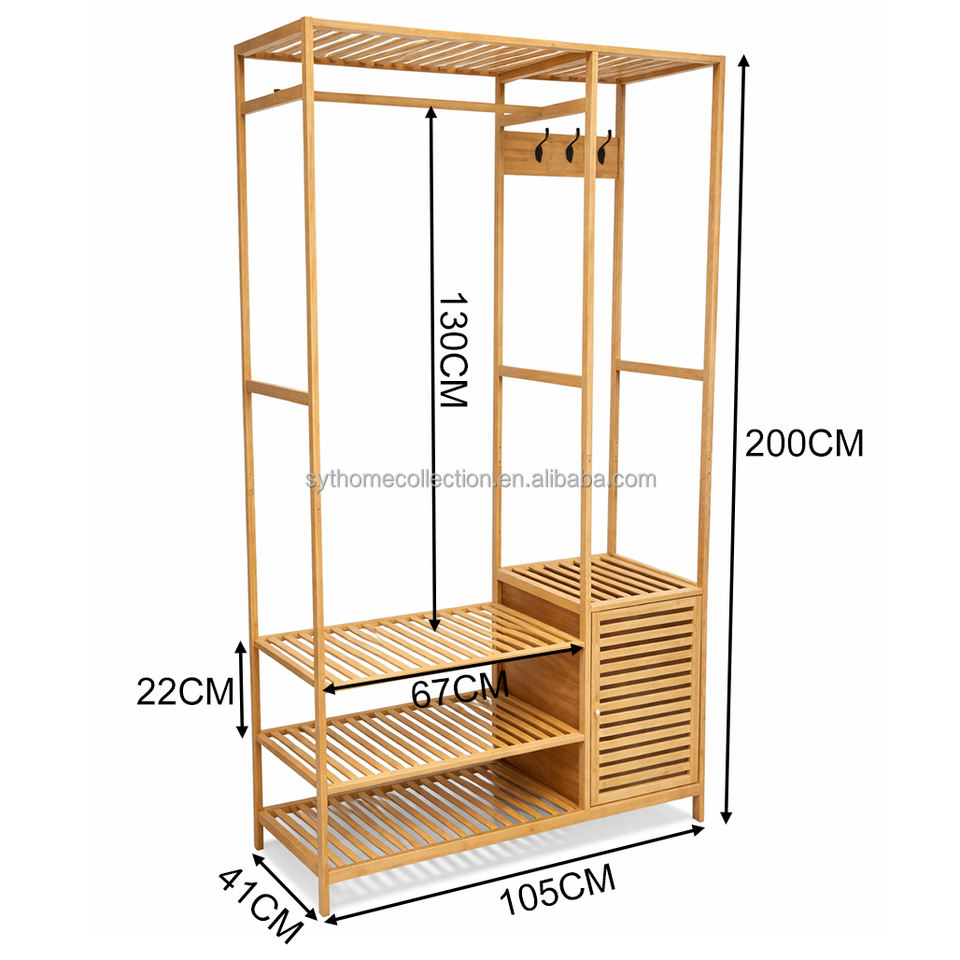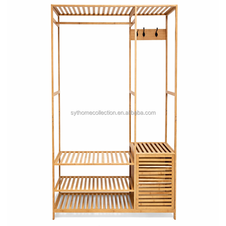 ราวแขวนเสื้อผ้าไม้ไผ่แบบกว้าง SYT จัดส่งรวดเร็ว สำหรับร้านบูติก ตู้โชว์สินค้าสำหรับโชว์รูม